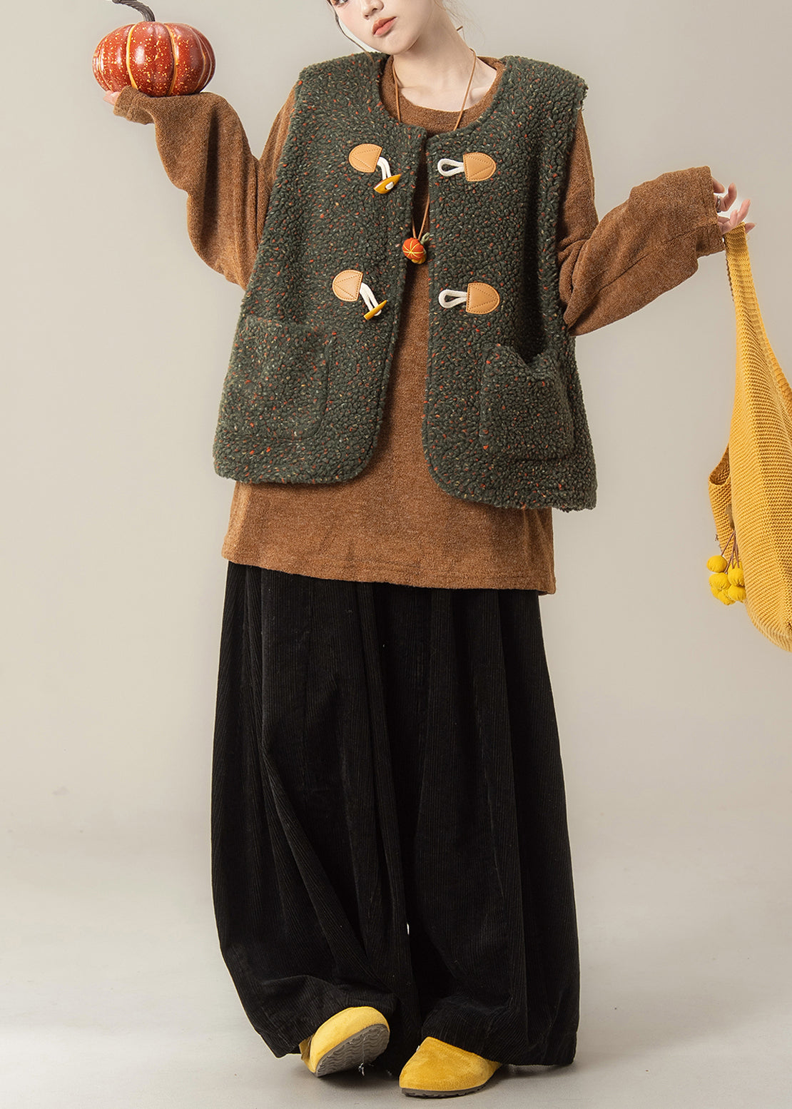 Japanese Style Green Vest And Top Pants Three Pieces Set Winter