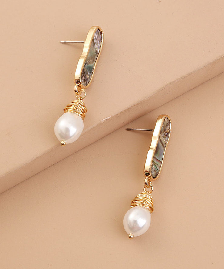 Chic Sterling Silver Inlaid Jade Abalone Shell Drop Earrings