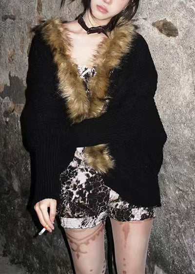 Fashion Black Oversized Patchwork Faux Fur Loose Jacket Winter