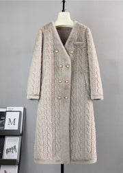 French White V Neck Pockets Double Breast Mink Cashmere Coats Winter