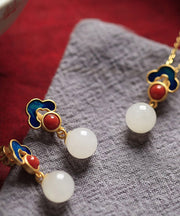 Simple White Sterling Silver Inlaid Set Gem Jade Agate Drop Earrings