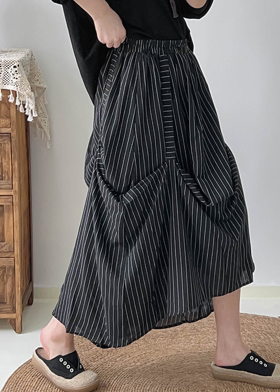 Fitted Black Asymmetrical Striped Cotton Skirts Summer