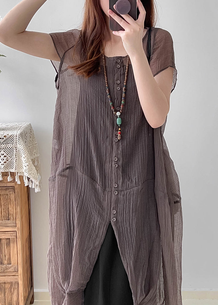 Grey Silk Two Piece Set Women Clothing Asymmetrical Wrinkled Summer