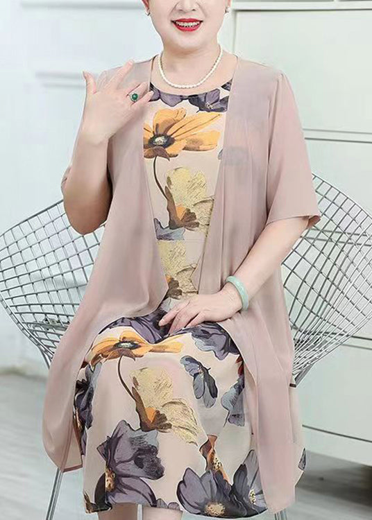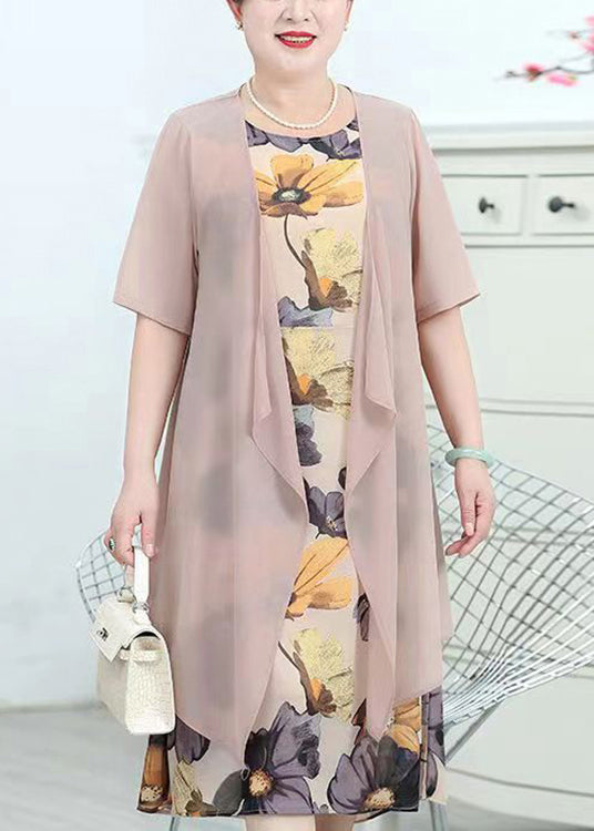 Chic Pink O-Neck Print Patchwork Chiffon Two Piece Suit Summer