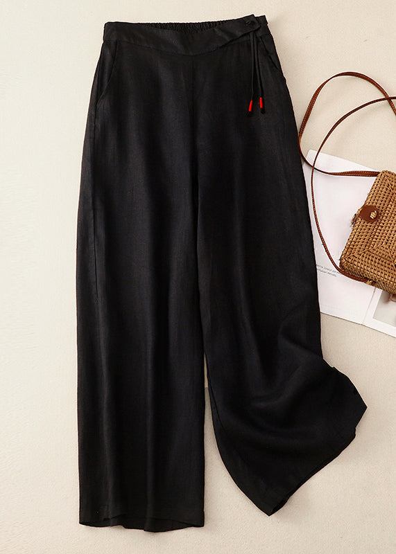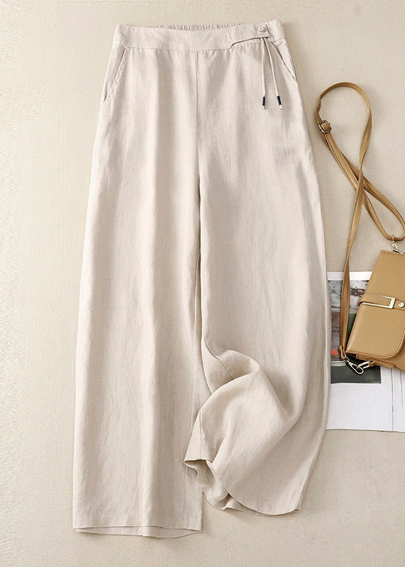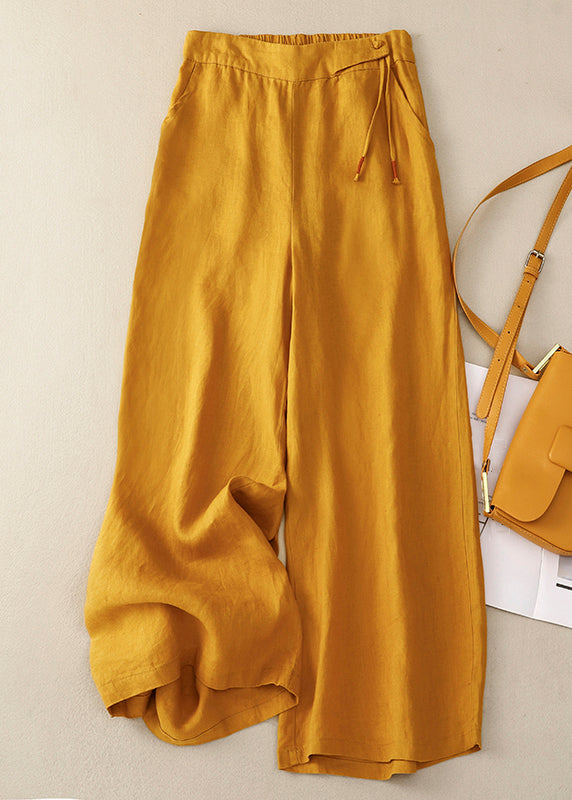 New Yellow Button High Waist Cotton Wide Leg Pants Summer