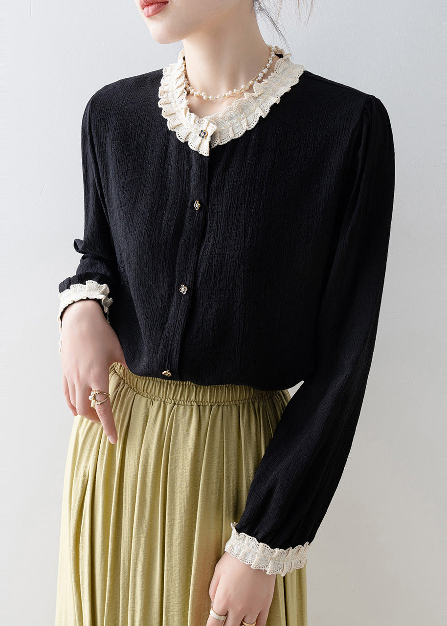Bohemian Black Oversized Patchwork Lace Blouses Spring