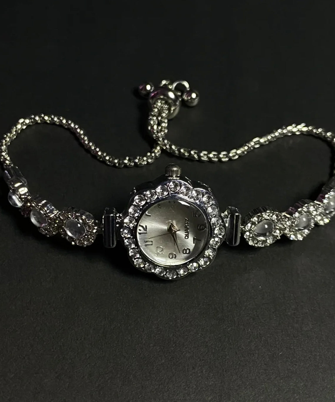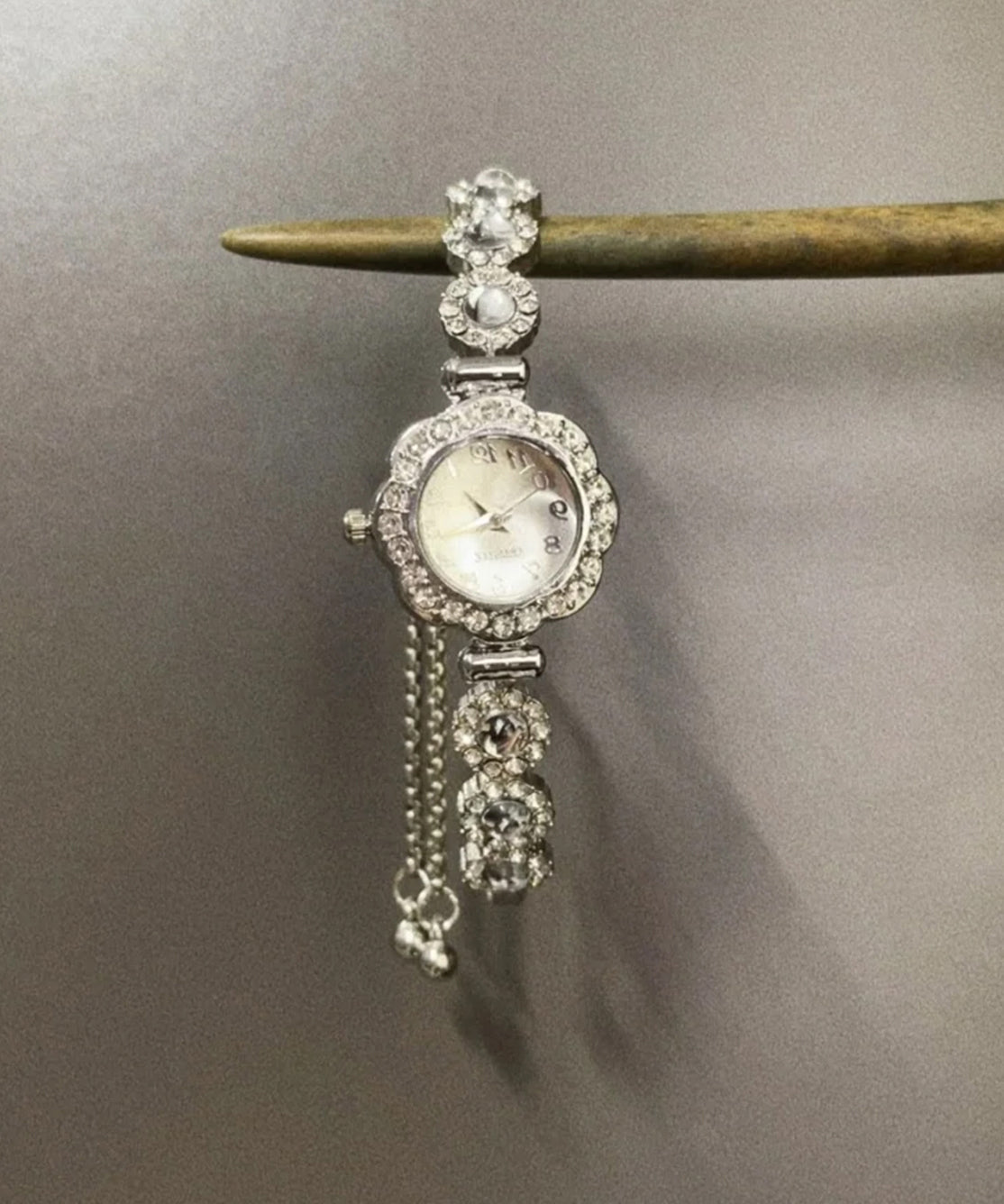 Fine Silk Alloy Zircon Gem Stone Pull-Out Watches