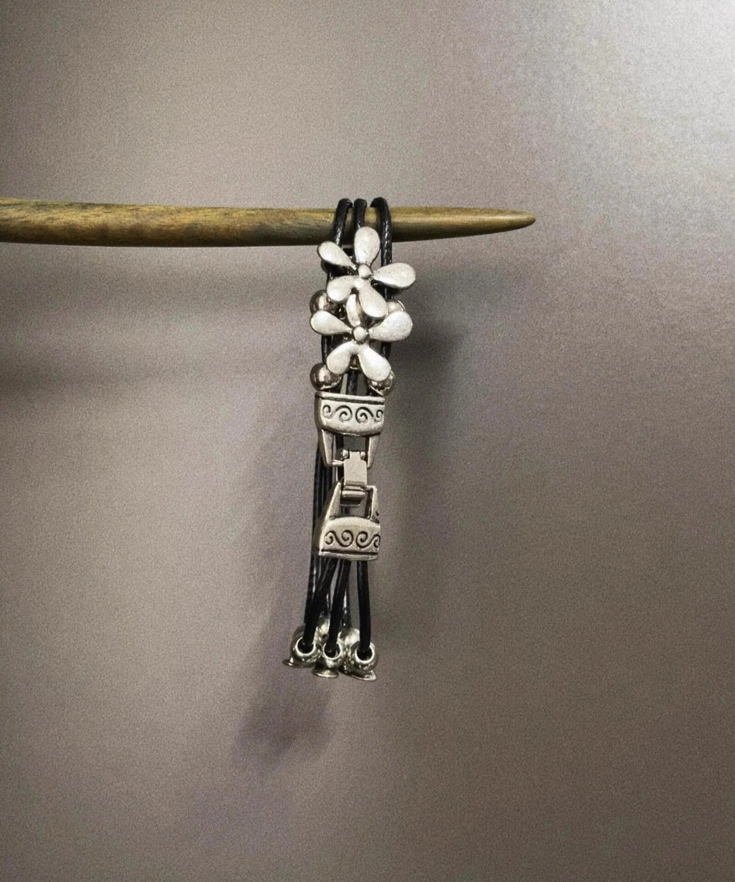 Retro Silk Stainless Steel Alloy Floral Bracelet