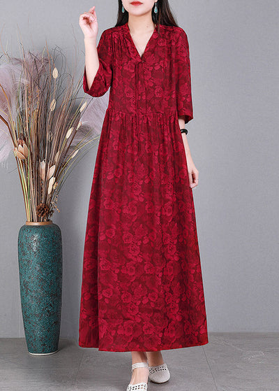 Mulberry V Neck Print Cinched Silk Vacation Dresses Long Sleeve