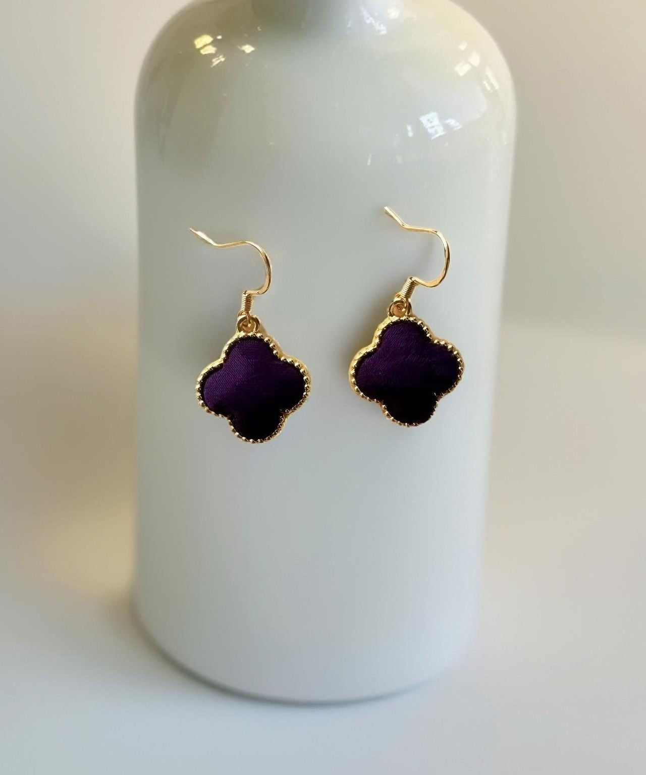 Chinese Style Blackish Green Copper Alloy Four-Leaf Clover Calabash Drop Earrings