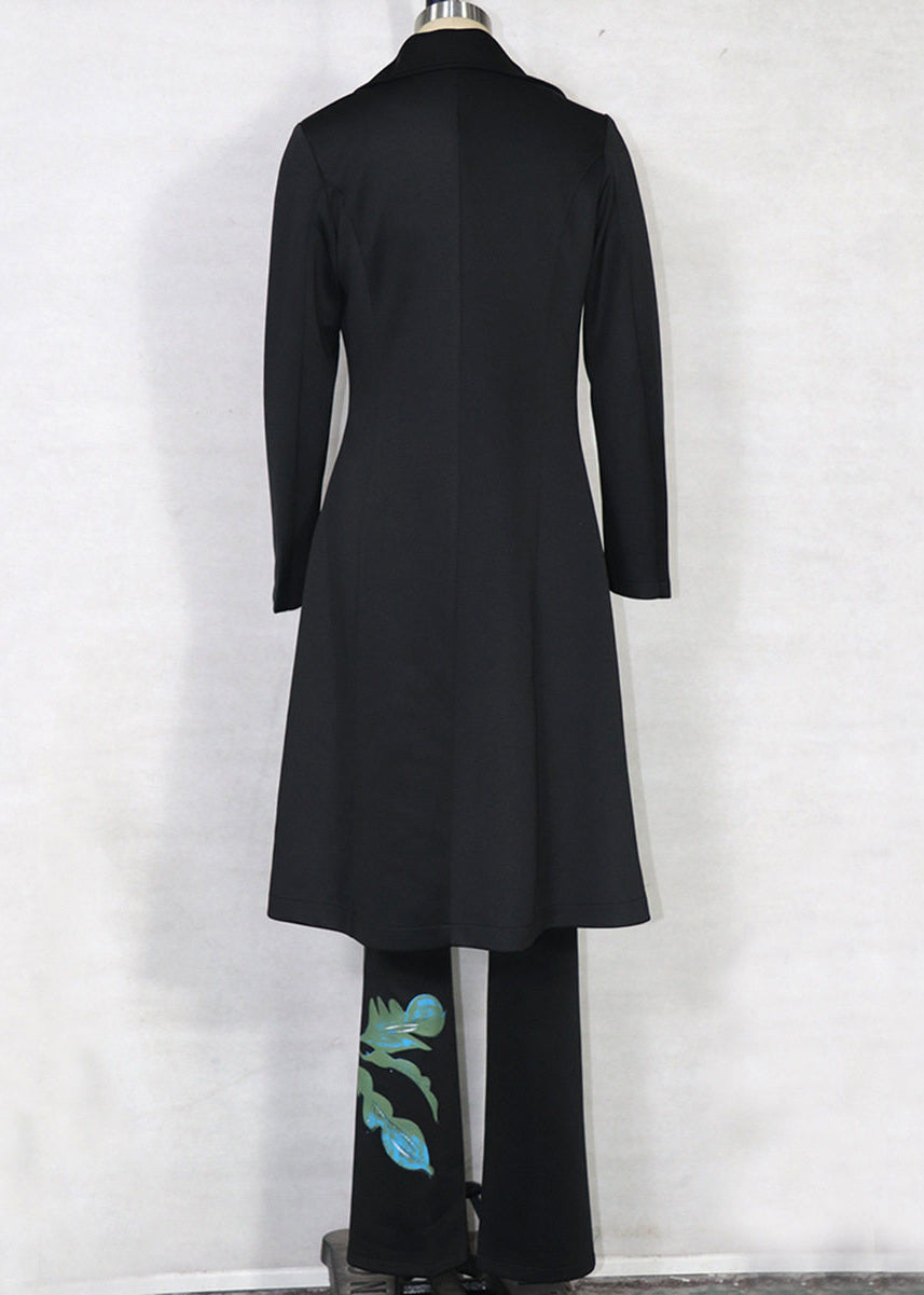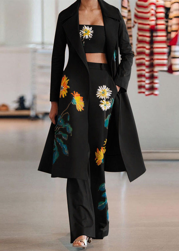 Fashion Black Notched Print Coats ,Tube Top And Pants Three Pieces Set Spring