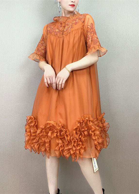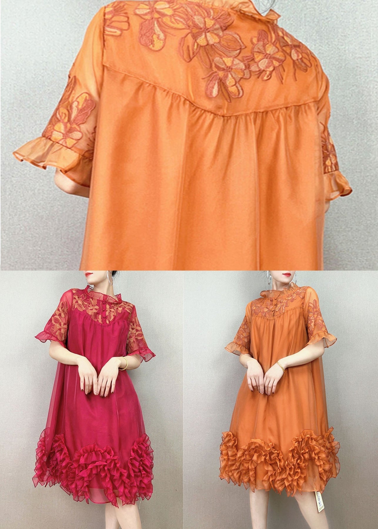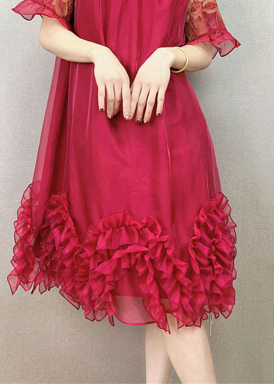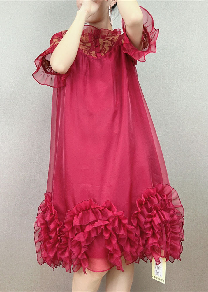 Red Patchwork Tulle Party Dress Embroideried Ruffled Summer