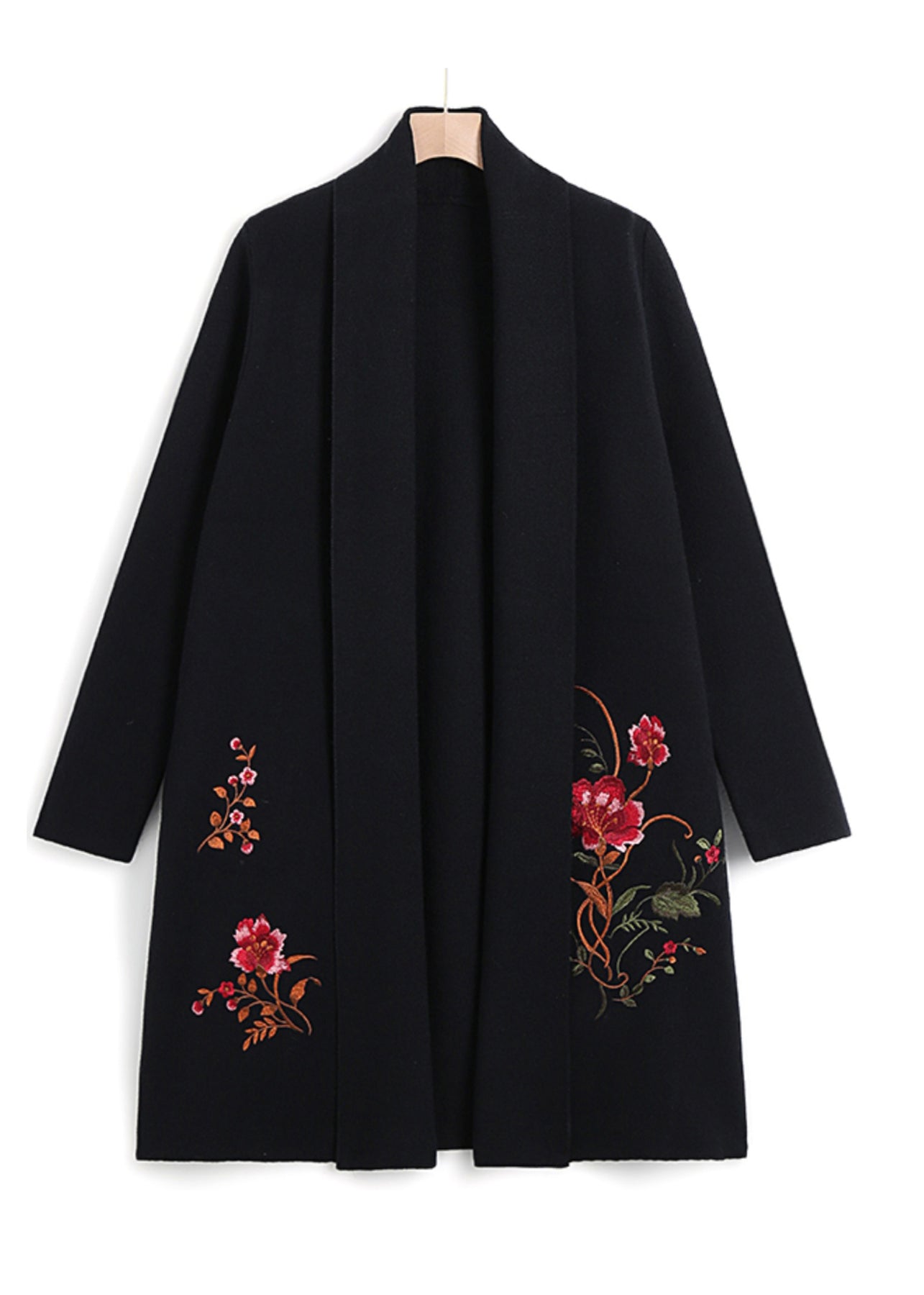 Black Solid Cozy Woolen Maxi Cardigans Fall