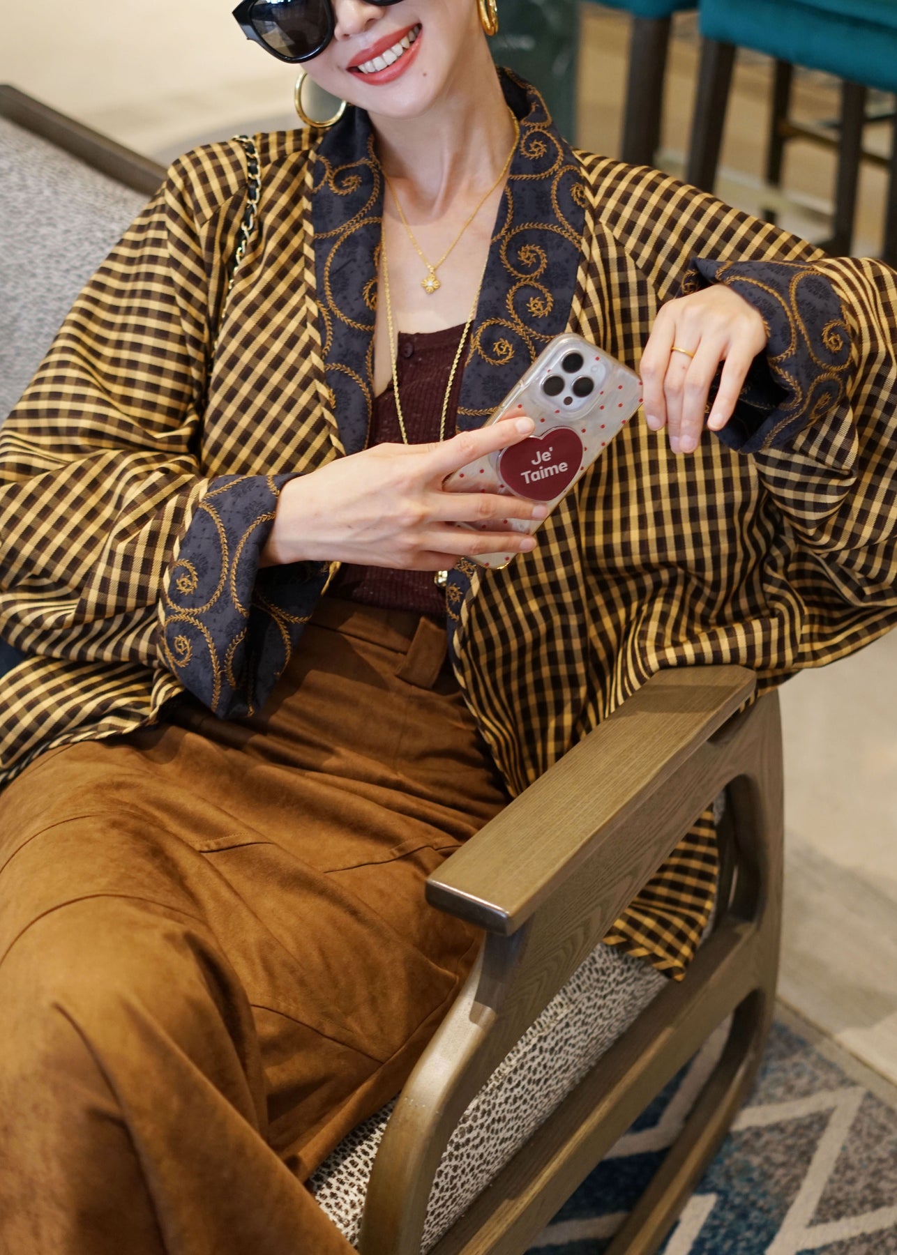 Loose Navy Embroidered Wear On Both Sides Cotton Cardigans Batwing Sleeve
