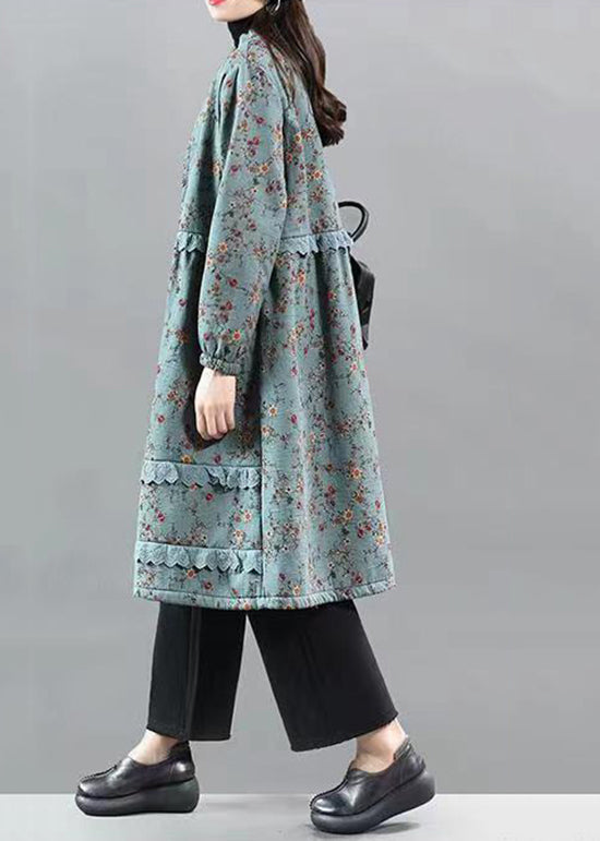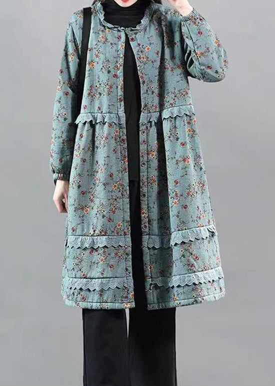 Chic Blue Ruffled Lace Patchwork Warm Fleece Coat Fall