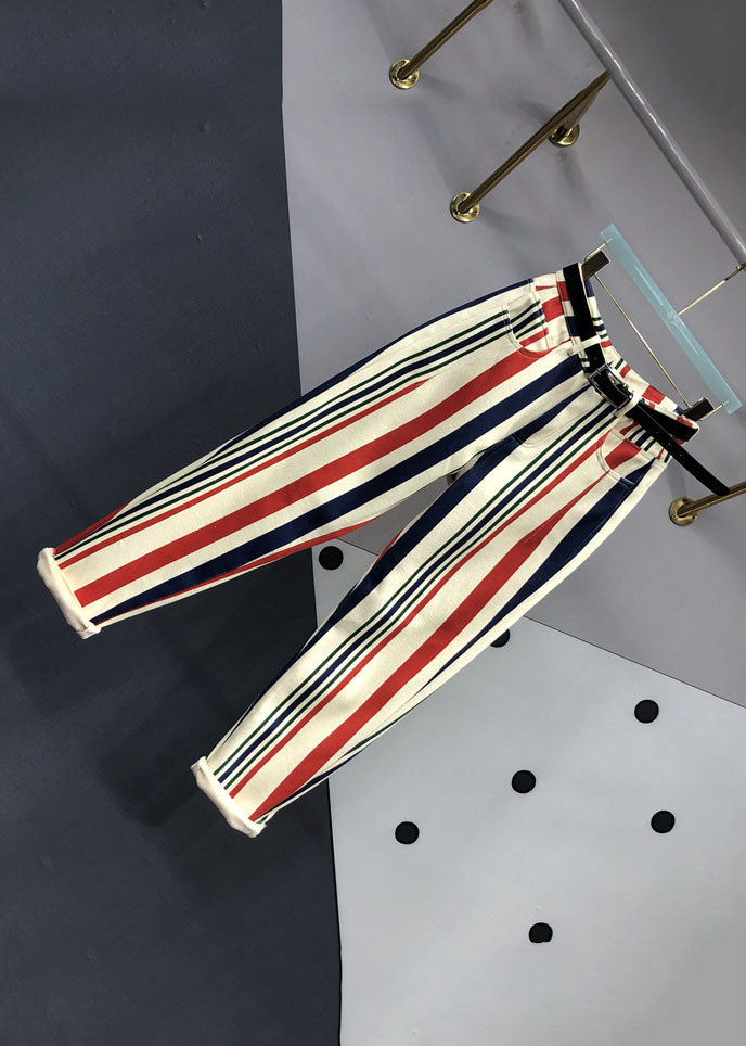 Vogue Striped Pockets Thick Beam Jeans Fall