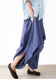 DIY Blue Asymmetrical Design Pockets Linen Pants Skirt Fall