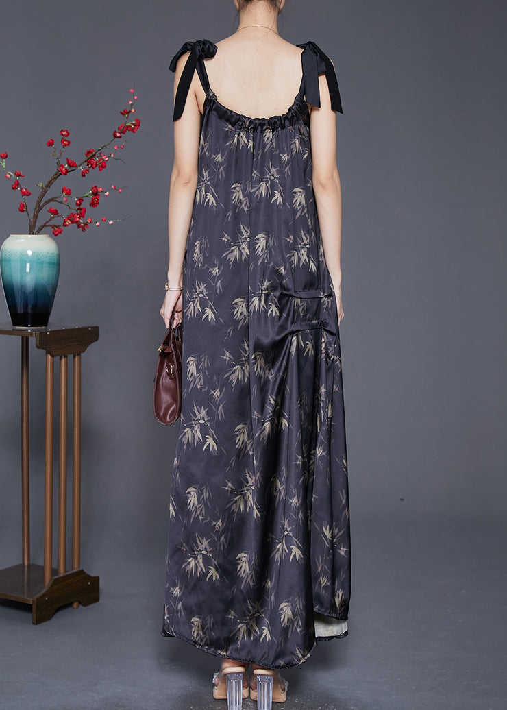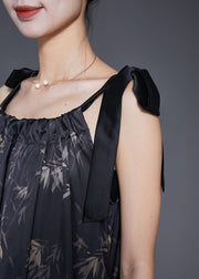Bohemian Black Print Wrinkled Silk Strap Dresses Summer