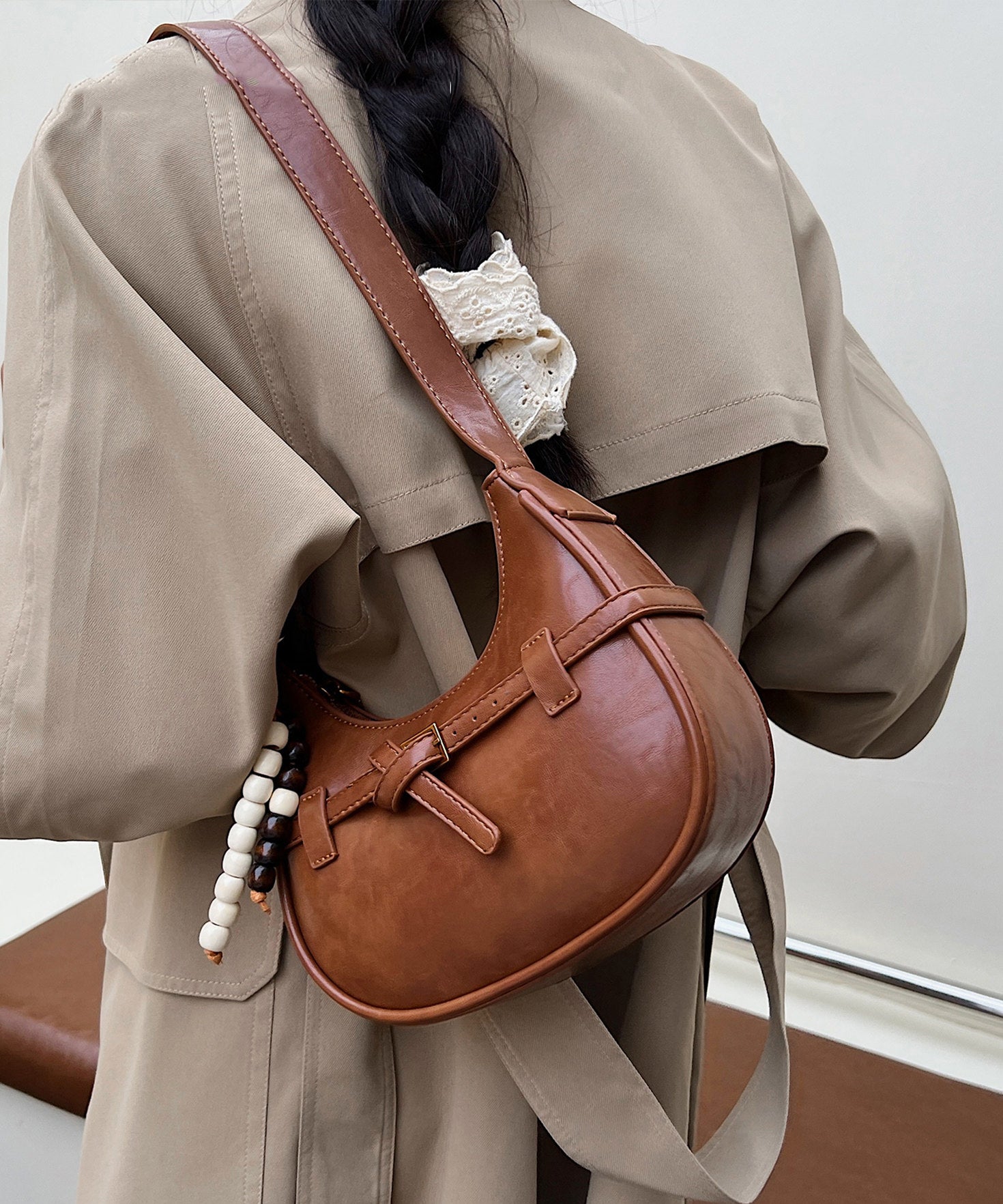 Unique Brown Tasseled Solid Durable Faux Leather Saddle Bag