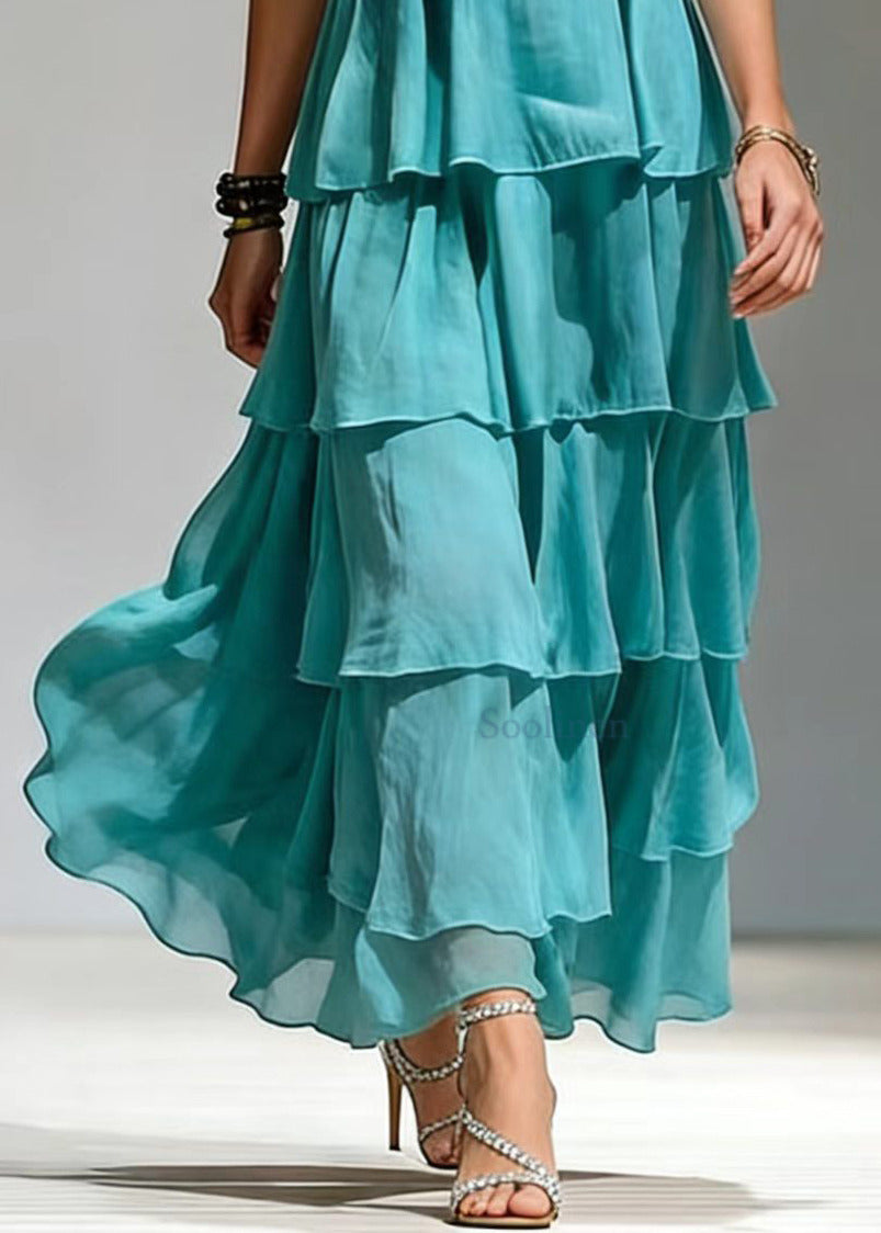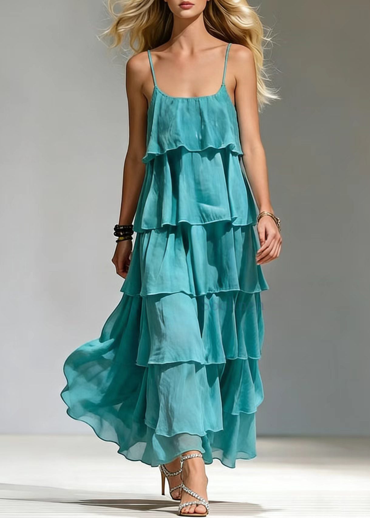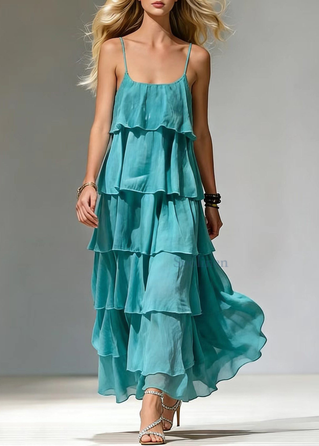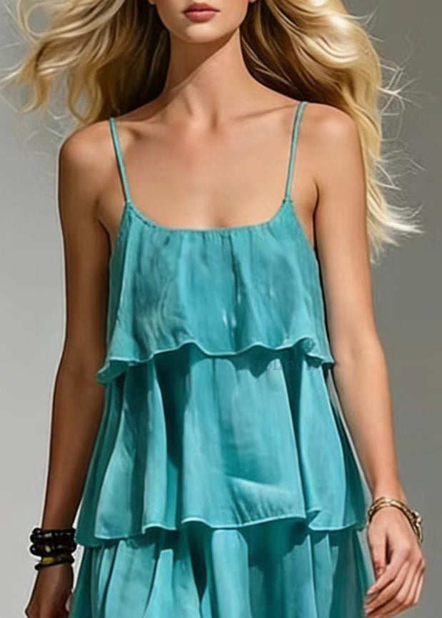 Boho Blue Ruffled Cotton Beach Dress Summer