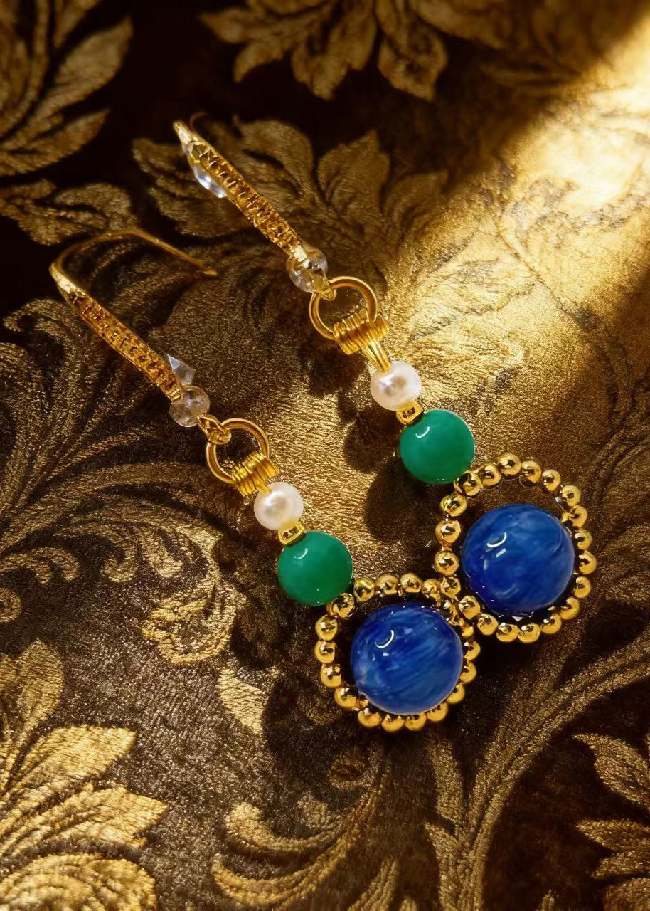 Stylish Peacock Blue Gem Stone Ethnic Style Drop Earrings