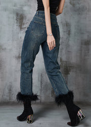 Beautiful Navy Patchwork Feather Denim Pants Trousers Spring