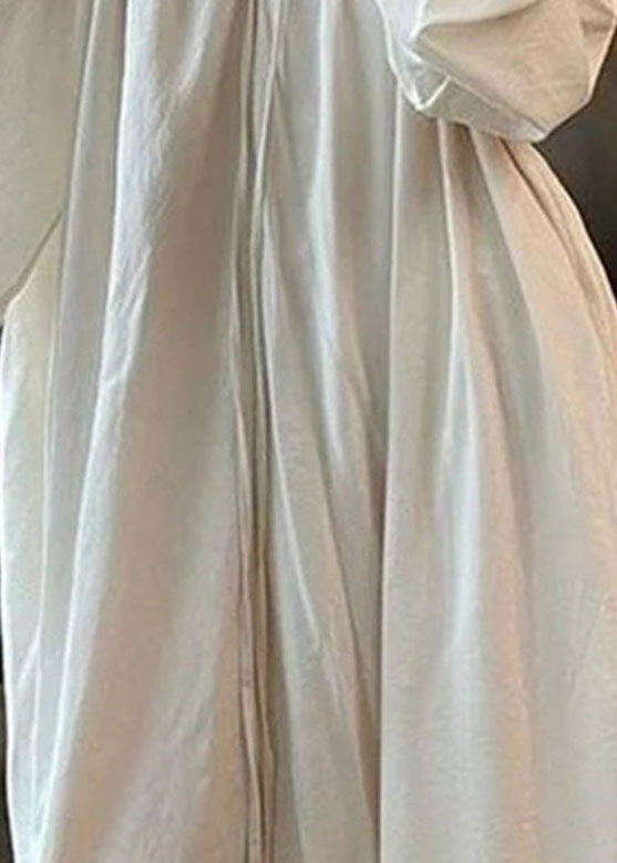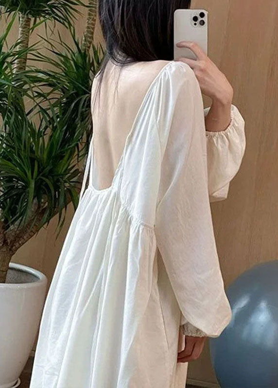 Loose White V Neck Cinched Backless Maxi Dress Long Sleeve