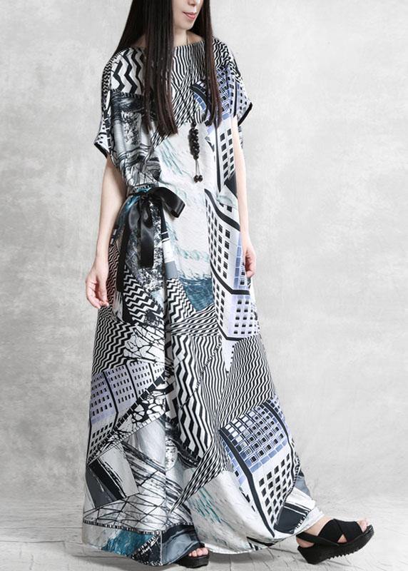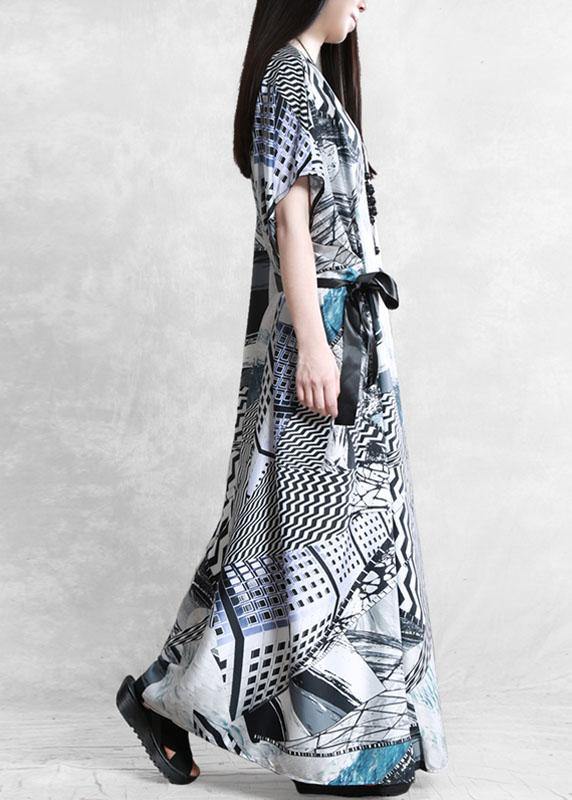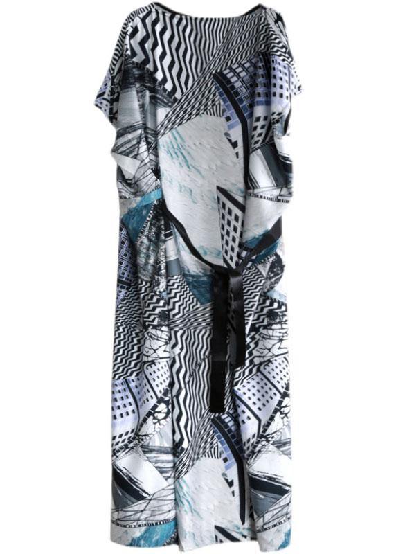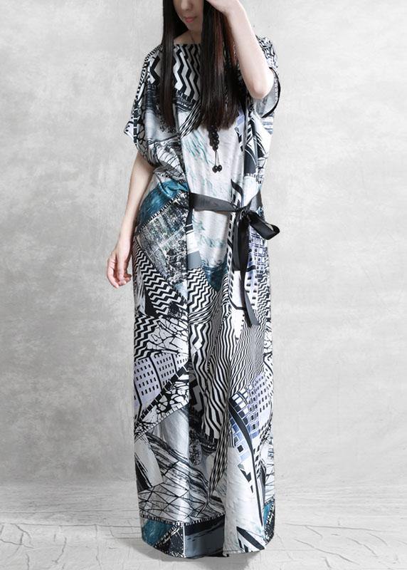 Plus Size Gray Print Silk Robe Dresses Tunic