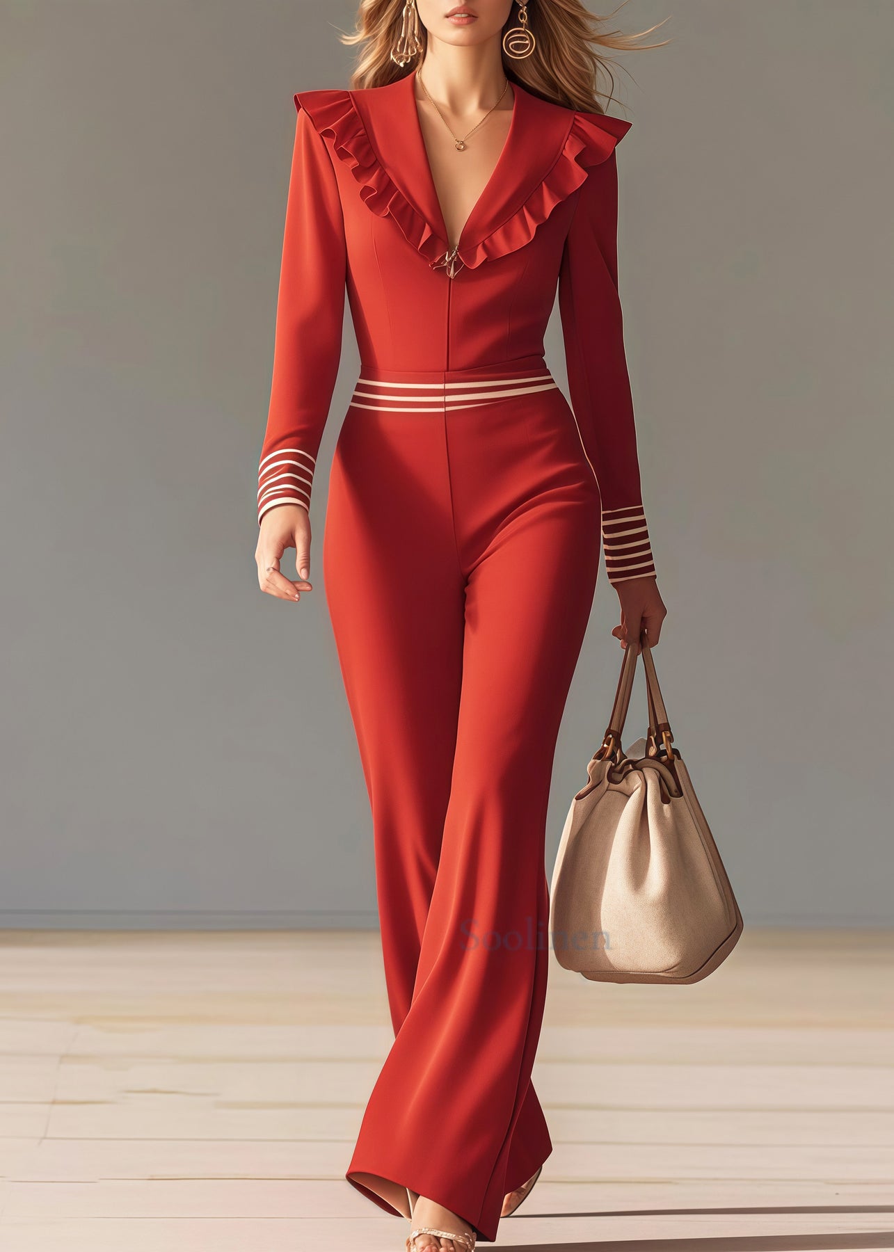 Boho Red Ruffled Patchwork Chiffon Overalls Jumpsuit Spring