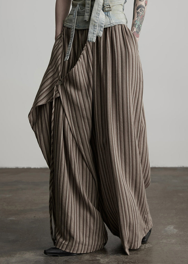 Women Coffee Pockets Striped False Two Pieces Cotton Pants Fall