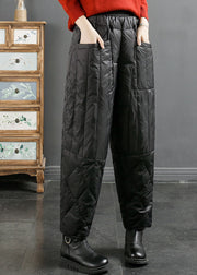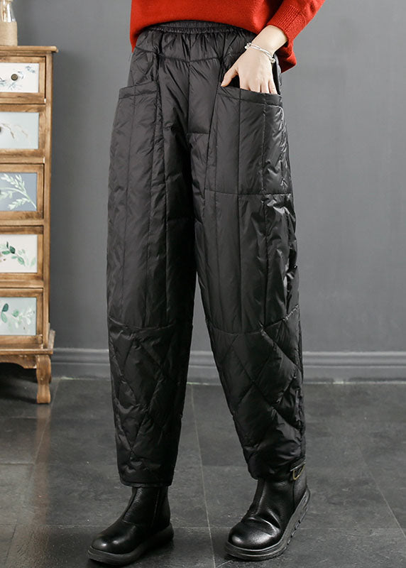 Fashion Black Pockets Patchwork Thick Duck Down Filled Pants