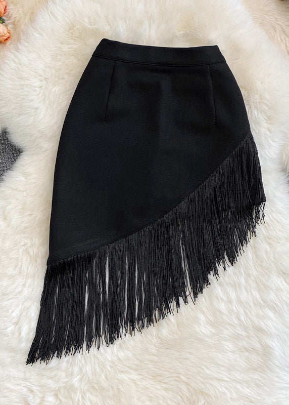 Fashion Black Asymmetrical Tassel High Waist Skirt Summer