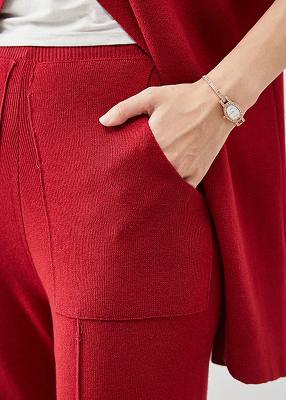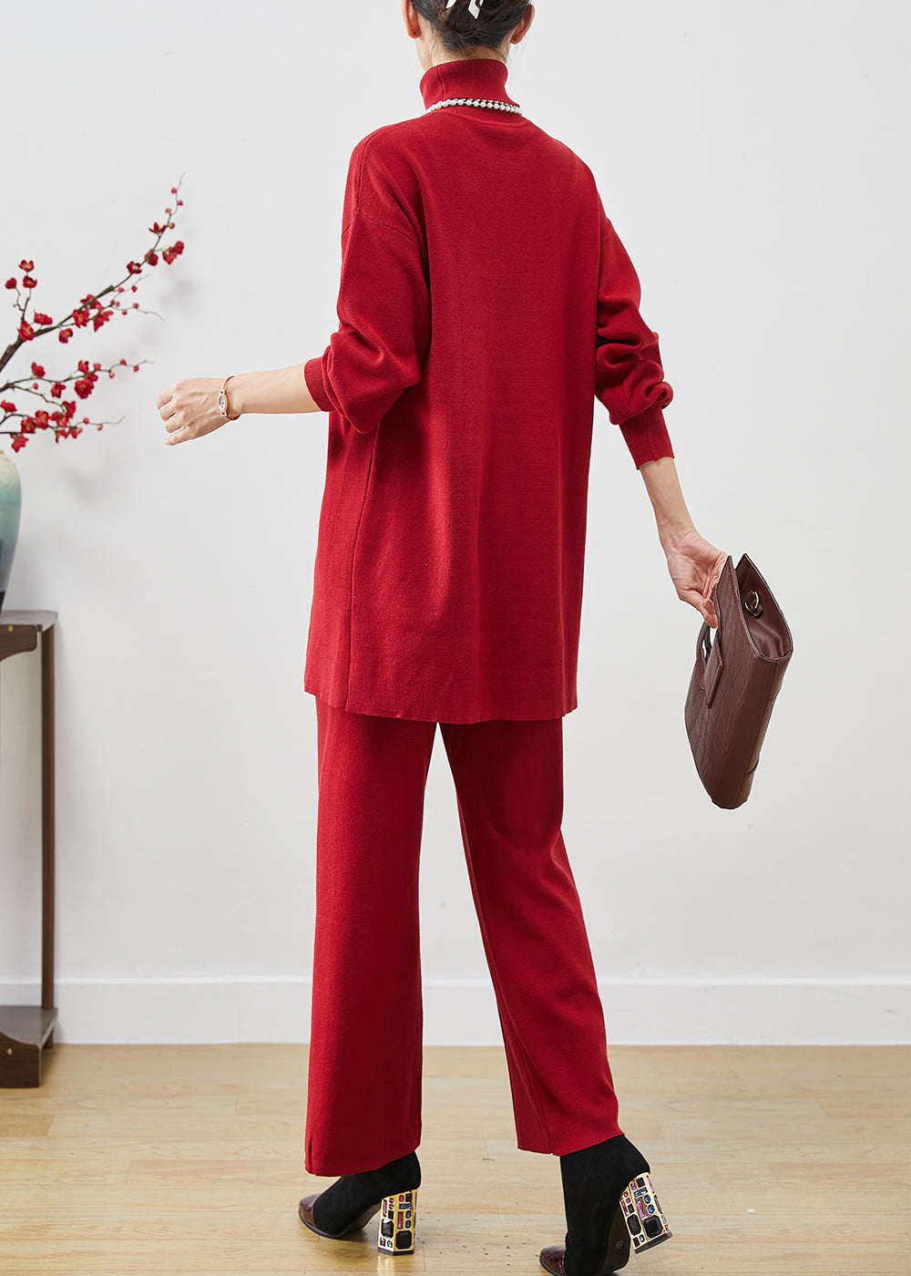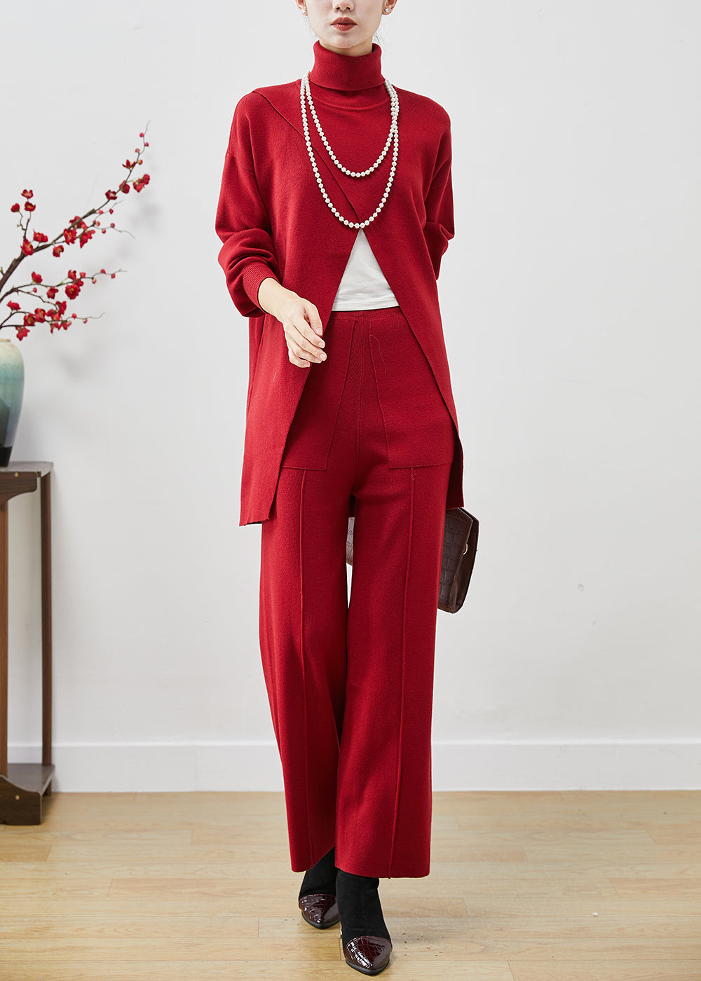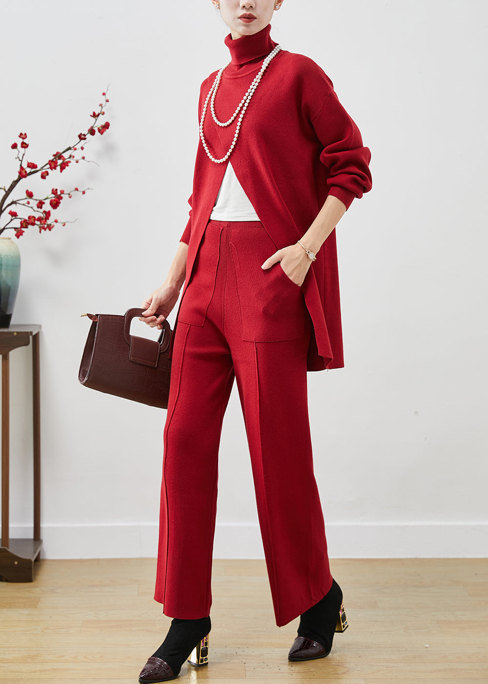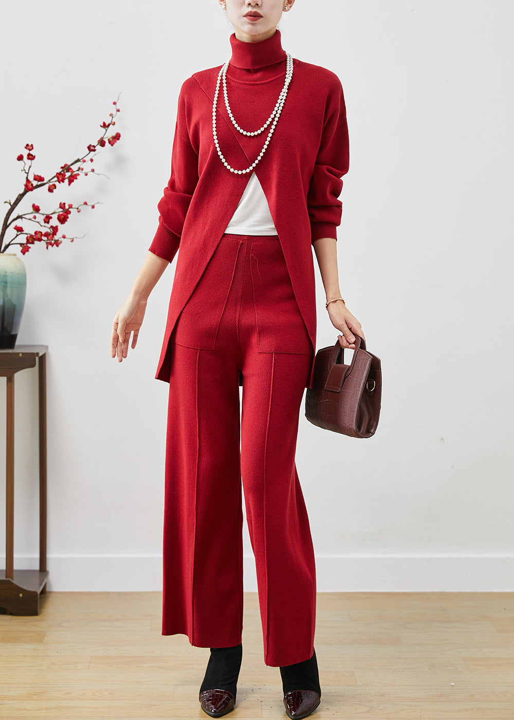 Women Red Turtle Neck Side Open Original Design Knit Two Pieces Set Spring