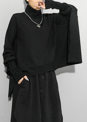 Plus Size Black Turtleneck Asymmetrical Sweatshirts Long Sleeve