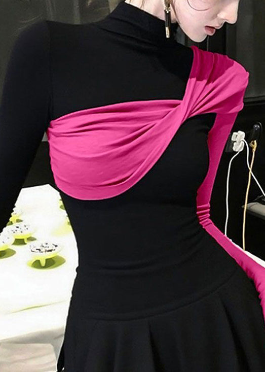Slim Fit Purple Asymmetrical Patchwork Cotton T Shirts Fall