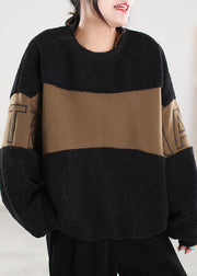 Classy Black Patchwork Faux Fur Pullover Street wear Winter