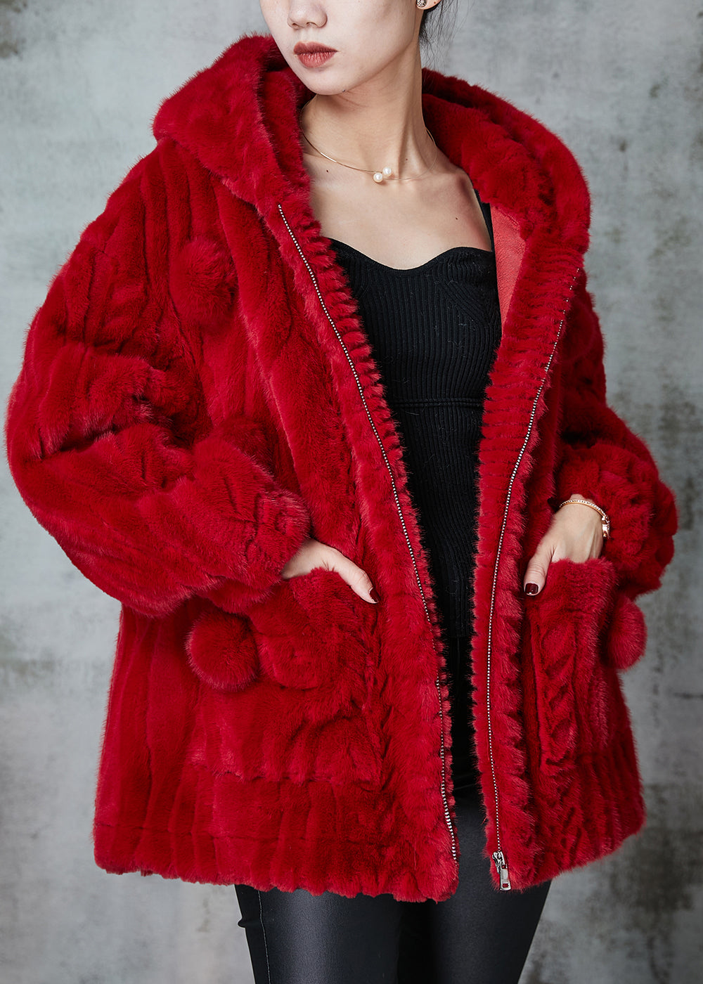 Red Warm Fuzzy Fur Fluffy Coats Fuzzy Ball Decorated Spring