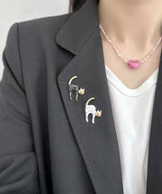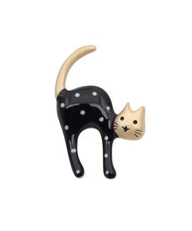 Lovely Black Alloy Dot Little Cats Brooches