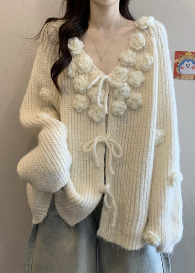 New Rose Lace Patchwork Solid Knit Cardigans Winter