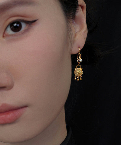 Chinese Style Gold Sterling Silver Overgild Pearl Beeswax Tassel Drop Earrings