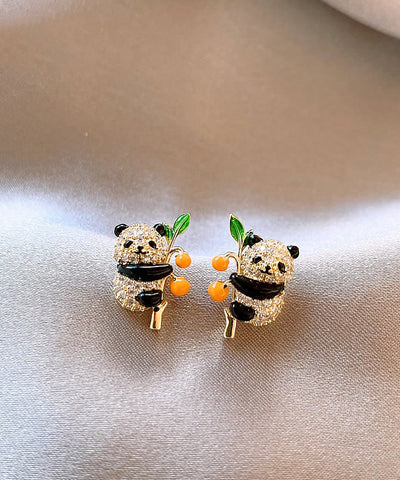 Original Design Gold Copper Overgild Zircon Panda Persimmon Stud Earrings