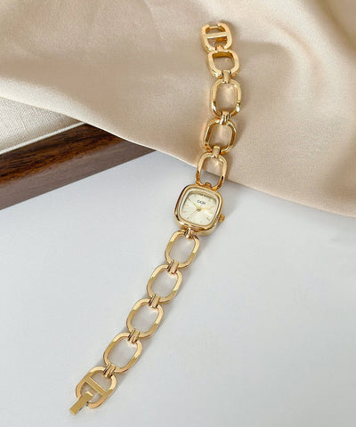 Simple Gold Alloy Hollow Out Square Reinforced Glass Watches