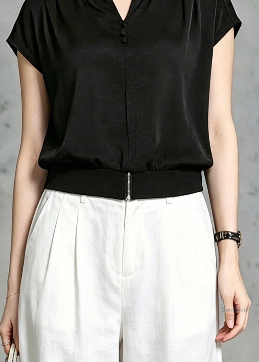 Loose Black O-Neck Solid T Shirt Summer