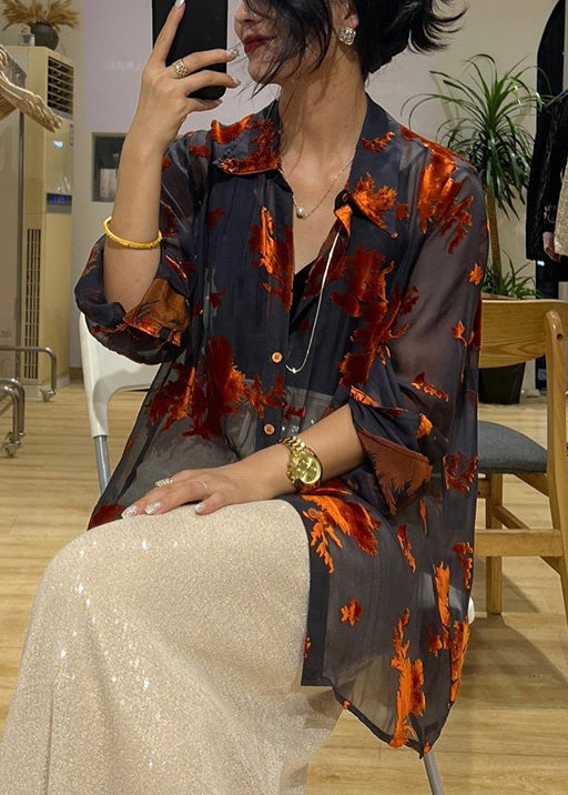 Black Button Print Thin Chiffon Peter Pan Collar Summer