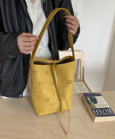 New Yellow Hollow Out Large Capacity Faux Suede Bucket Bag