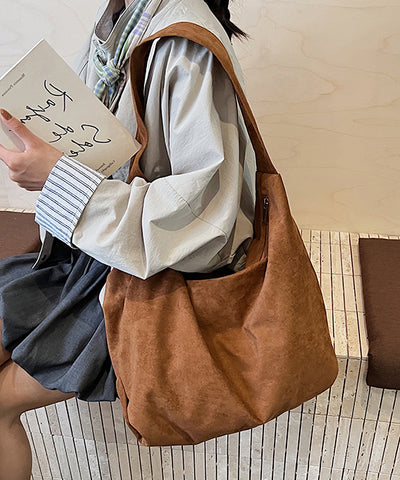 Handmade Brown Faux Suede Large Capacity CrossBody Bag