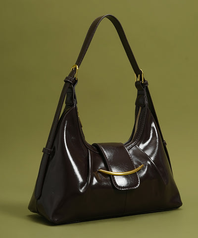 Retro Brown Solid Durable Faux Leather Womens Shoulder Bags