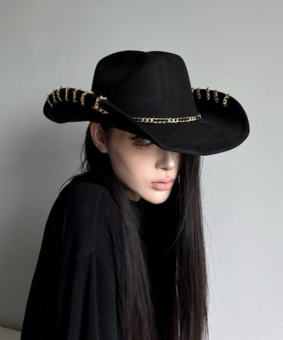 Gothic Style Black Chain Edge Suede Cowboy Hat