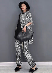 Fashion Black Asymmetrical Patchwork Leopard Print Cotton Two Pieces Set Summer
