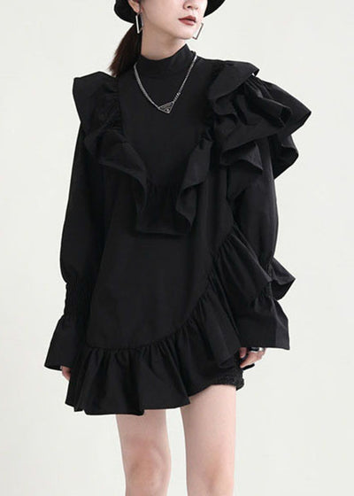 Black Peter Pan Collar Patchwork Long Shirt Dresses Spring
